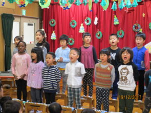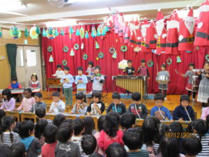 0歳児クラスから5歳児クラスまで、クリスマスの雰囲気の中、音楽会をしました。