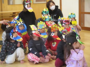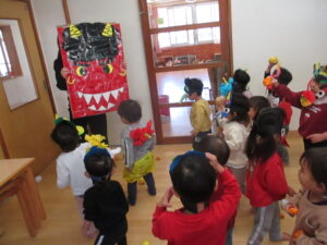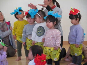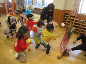 先日乳児の部、幼児の部に分かれて節分の会がありました。