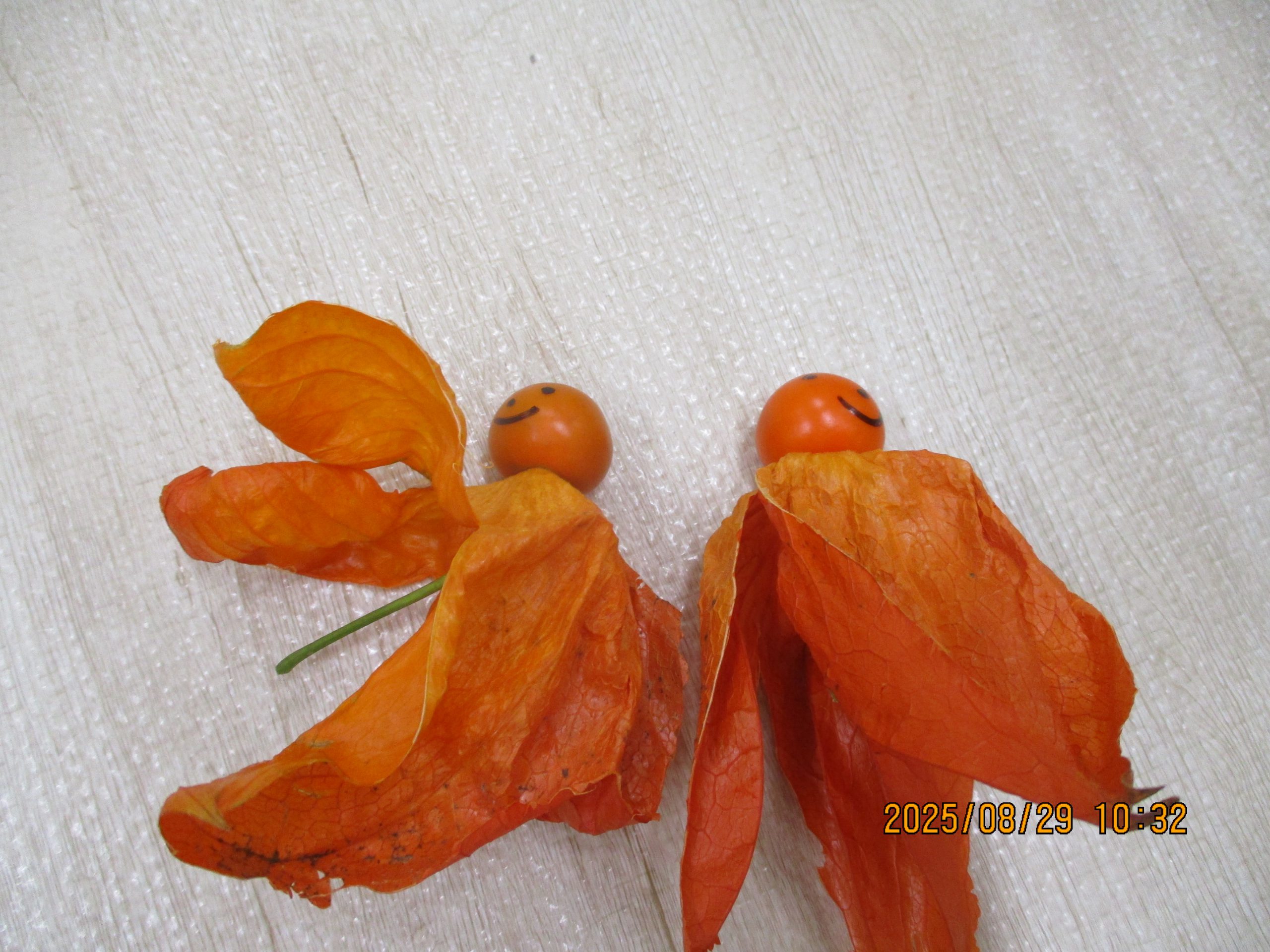 実物のほおずきで、ほおずき人形を作って遊びました。