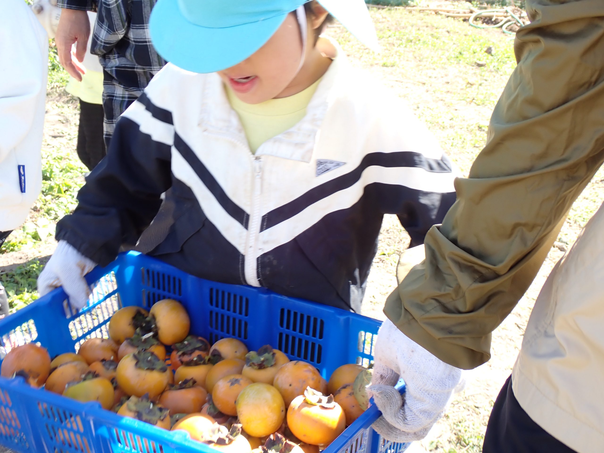 柿を採らせてもらったり田んぼで遊んでカエルを捕まえたり楽しみました。