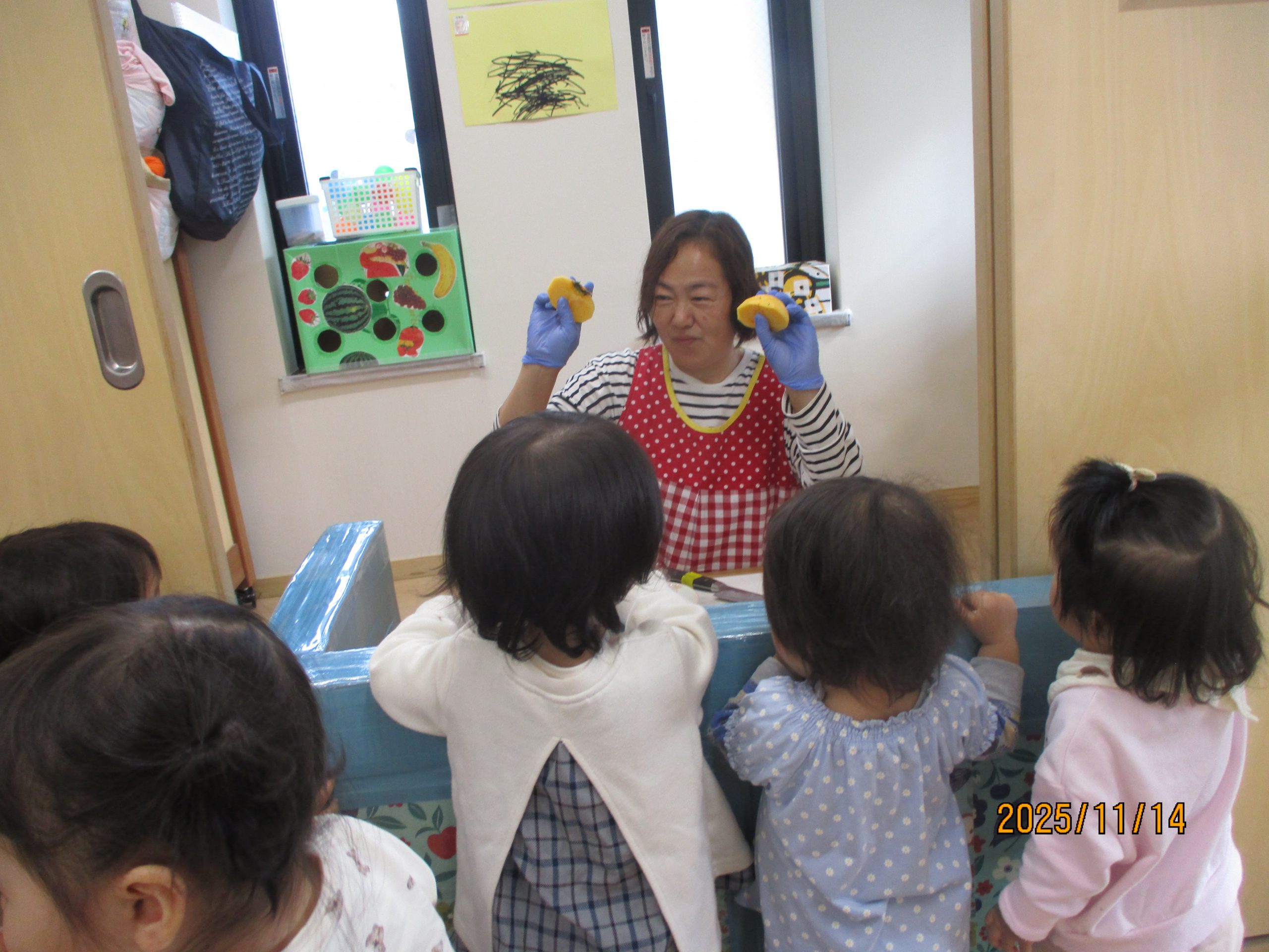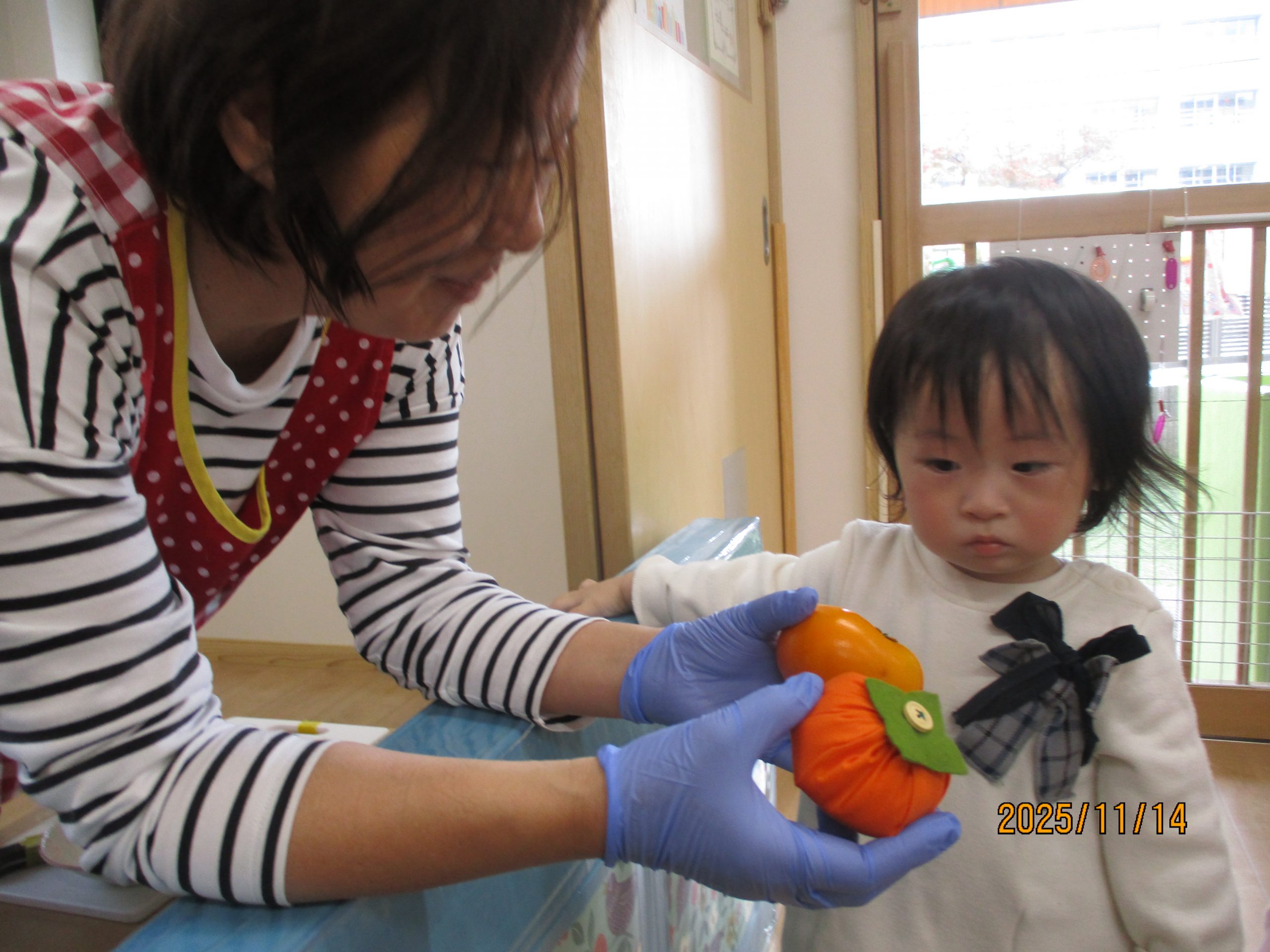 いちごぐみ 0歳児 大好きな柿