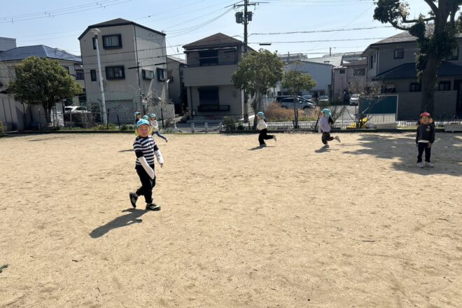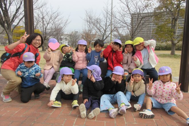 4歳児5歳児クラスで一緒に、とびまつの森へお別れ遠足に行ってきました。 5歳児すいかぐみは久々でしたが、4歳児ぶどうぐみに「もうすぐ着くからな」「あの山やで」と道中から伝えてくれました。 ビオトープが魅力的で、様々な生き […]