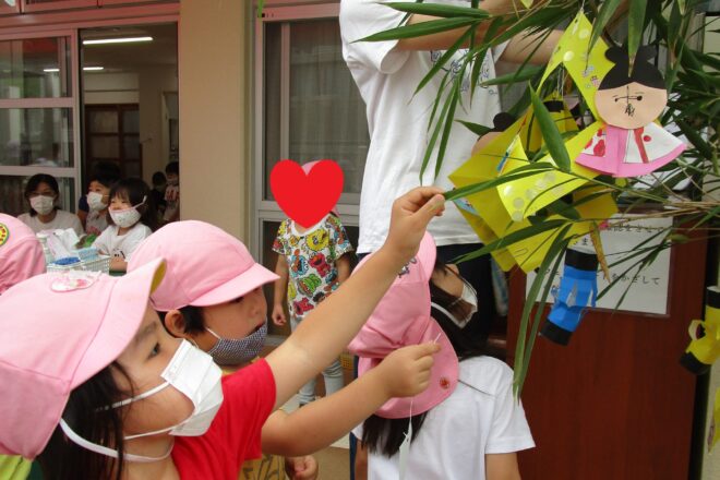 7月7日、七夕の会を各クラスで行いました。 <もも組・いちご組> 「たなばた」の歌を保育士と一緒にうたったり、一人ひとりの笹飾りや短冊を紹介してもらったりして、七夕の雰囲気を楽しみました。 & […]