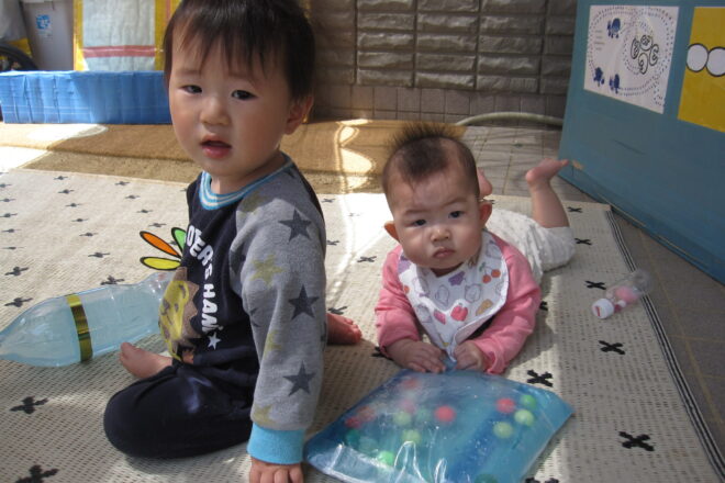 雨の日のマットあそび。 「♪ぽつぽつ ぽつぽつ あめこんこん」 スズランテープの付いた棒を雨に見立ててみたり・・・ ばしゃーん!ざぶーん!と言いながら、ハイハイで進んでみたり。 大きな川みたいですね! 今度は、お散歩ごっ […]