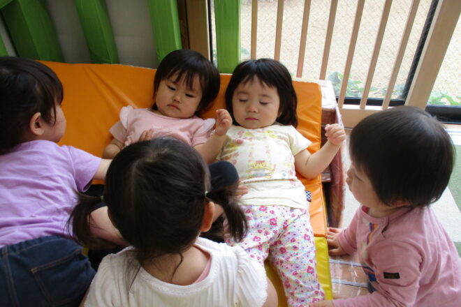 お庭にでました。 手作りのスロープをハイハイでおりたりのぼったりして、お外を楽しみ始めました。 せんせいといっしょに ぽぽんぴ ぽんぽんの絵本を読んでます。 &nb […]