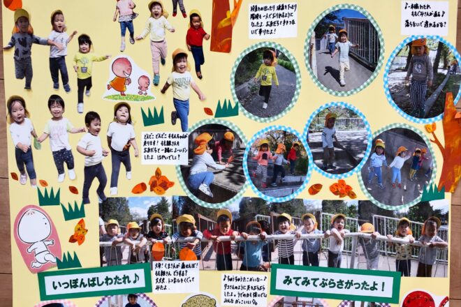 もも組さんが楽しんで遊んでいる写真をパネルにして窓に掲示しました。 お部屋も秋らしくどんぐりや、みんなで手形を取りもみじに見立ててはりました。 &nb […]