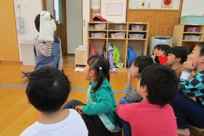 わらべうたの会をしました。 ♪こんこん小山のこうさぎは なぜにお耳が長うござる? わらべ歌を覚えてうさぎの人形とやりとりをして 楽しみました。 みんなで輪になって1か所門を作り一つの後ろ向きの […]