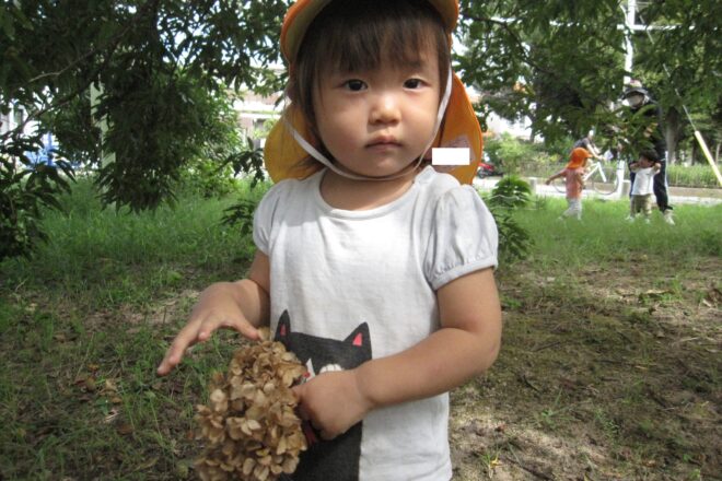 川沿いをおさんぽして、竹ノ花グランドまで行きました。 「どんぐりあるかな?」「あったよ!」 「みて!」 見つけたものは、アジサイのドライフラワーでした。. えだも見つけたよ! セミの抜け殻も発見! &nbs […]
