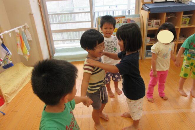 稲上先生が来てくださり、 わらべうたあそびをして過ごしました。 友だちとボートになって進んでみたり バッタになって 「き~りす ちょん こどもに とられて あほらし ちょん!」 と歌いながら飛んだり隠れたり…♪ 2人組に […]