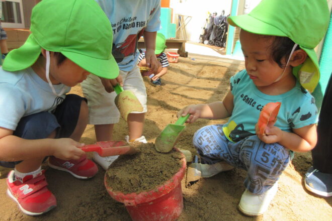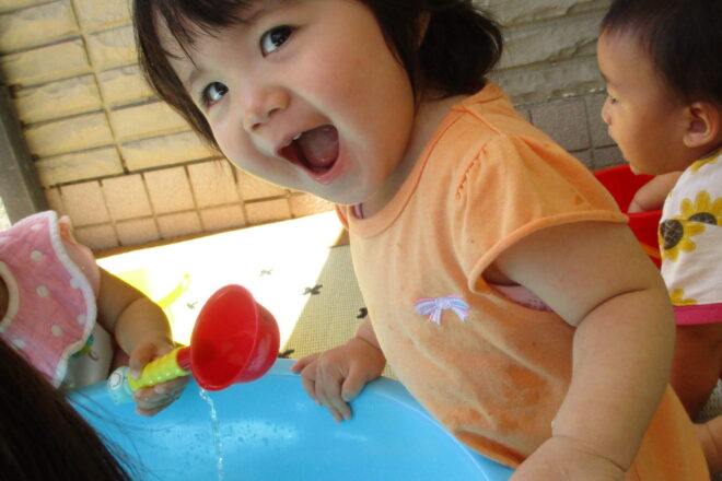 今日も楽しい水あそび。 ホースから水が出てくるのが面白くて気持ちよくて、嬉しそうに触っています。 小さなバケツはカバンにしたり、自分専用のお水入れになって大人気。 […]
