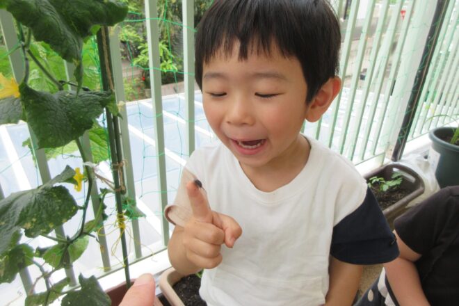 みかん組では今、ダンゴ虫とかたつむりを飼育しています。 始めはちょっとこわかったお友だちも、 ダンゴ虫を手のひらに乗せたり、かたつむりをツンツンとつついてみたりして 友だちと楽しんでいますよ! […]