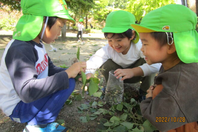 自分で作ったお散歩バッグを持ってお船の公園へ行ったよ。 「見て!」「葉っぱがあったよ~」「緑のどんぐり見つけた!」と嬉しそうにバッグへ入れています。 バッグは嬉しいけど、走るのも楽しい!と、おいかけっこもいっぱいしたよ。 […]
